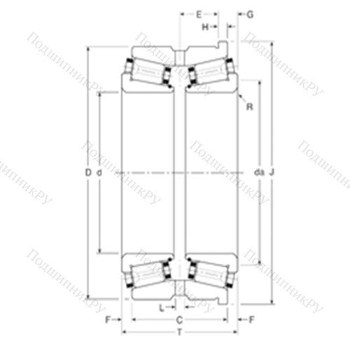 Подшипник роликовый радиально-упорный 131097/131158XH у которого конструкционной особенностью являются ролики в форме конуса и разъемный корпус. Изделие также может быть укомплектовано наружным кольцом с упорным бортиком или большим углом, двухрядными или четырехрядными роликоподшипниками, утолщенной внешней шиной.