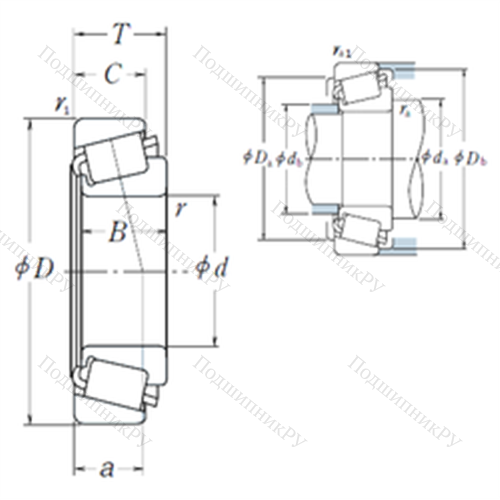 Подшипник роликовый радиально-упорный 560/553X у которого конструкционной особенностью являются ролики в форме конуса и разъемный корпус. Изделие также может быть укомплектовано наружным кольцом с упорным бортиком или большим углом, двухрядными или четырехрядными роликоподшипниками, утолщенной внешней шиной.