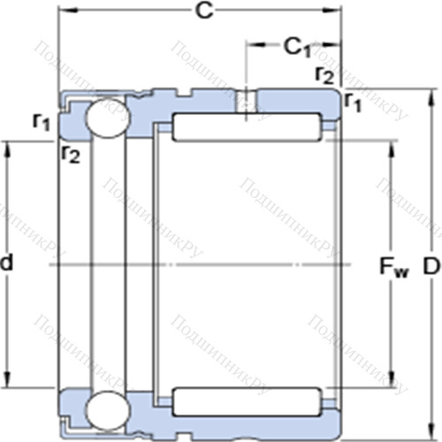Комбинированные упорные шарикоподшипники с игольчатыми роликами NX 17 Z