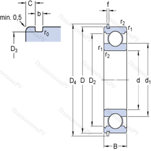 Однорядные радиальные шарикоподшипники с канавкой под стопорное кольцо 6202 NR