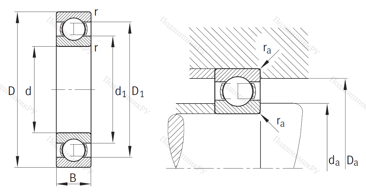 Однорядный шариковый подшипник 6318